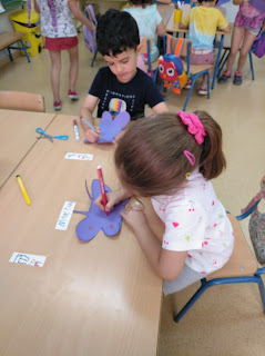 Hemos hecho tres manualidades con la ayuda de ellos dos, la primera es un gusanito juguetón: